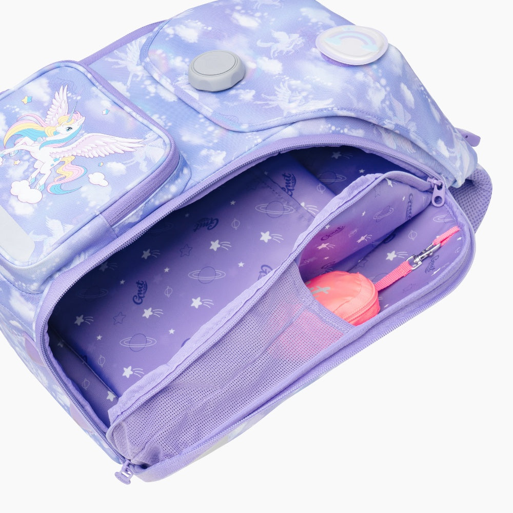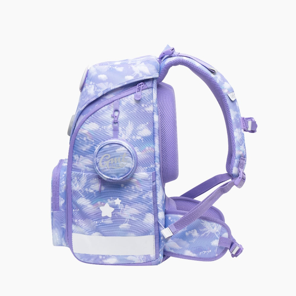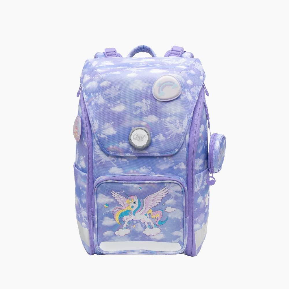 GMT VÆGG skole sekk - Den har en 23L kapasitet med en spennende hovedseksjon, utvidbare sidelommer og en lett tilgjengelig forlommer. Det robuste materialet sikrer langvarig bruk gjennom hele skoledagen, mens den myke, pustedyktige ryggpanelet gir komfortabel støtte under lange perioder. Tilpass barnets skolesekk med seks Velcro-klipp for å passe deres personlige stil og dra nytte av åttepunkters ryggstøttesystem som fremmer sunn stilling.
