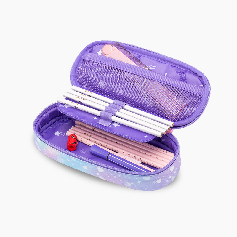 Multifunksjonelt pennal Ultralett 180° åpen konstruksjon Vann- og støvbestandig materiale Lett og solid kropp Stort volum God konstruksjon gjør at interiøret rommer mer skrivesaker. La barnet ditt få en vane.