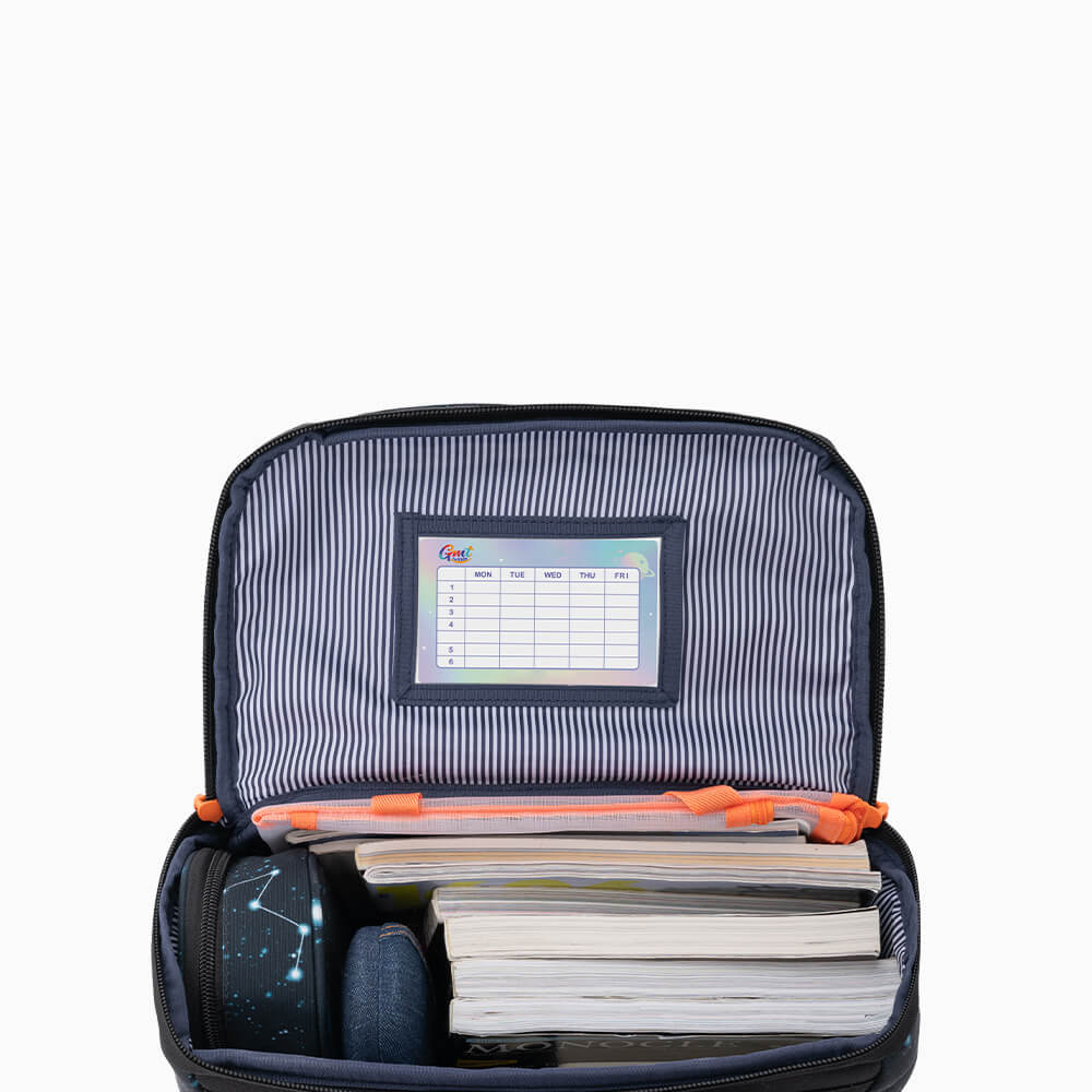 Skolesekken veier bare 780g, omtrent lik vekten av tre epler. Sekken har en kapasitet på 22l som kan forhindre at bøkene bretter seg sammen i hjørnene. Ved å unngå overflødig tilbehør som bare ville tilført mer vekt på barnekroppen, er GMT LIGHT kun utstyrt med nødvendige funksjoner som integrert ryggpanel, S-formede skulderstropper og brystspenne for bedre festing. Vi vurderer alle detaljer for å kunne produsere en praktisk og superlett ryggsekk. Kombinasjonen av lett og miljøvennlig stoff lindrer effektivt 30% av byrdene. Det store området med reflekterende flater bidrar til en trygg skolevei. Det beste med GMT LIGHT er at det følger med 3 tilpassbare borrelåsklistremerker med forskjellige temaer for gutter som elsker sport, science fiction og eventyr, og jenter som drømmer om en magisk fargerik verden. GMT LIGHT støtter sunn utvikling av barns fysiologi og psykologi. Skolesekkenes lekne design lyser opp skolehverdagene.